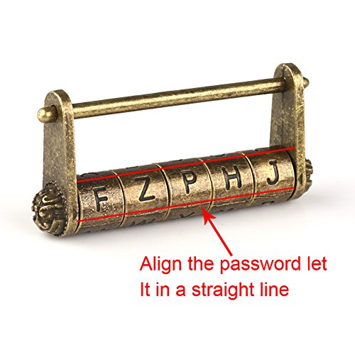 古錠前 アンティーク調 文字のパスワードロック 錠前 英文字 長8cm×高3.8cm×幅1.5cm 銅色