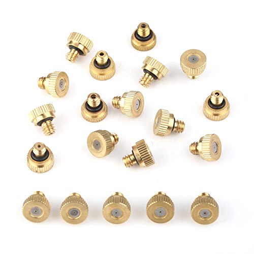 散水用具ミストノズル 噴出ノズル つなぐだけで簡単ミスト 銅製 ネジ10/24(3/16)20個セット ドリップ灌漑、加湿、殺菌消毒、冷却などに (穴径0.2mm)