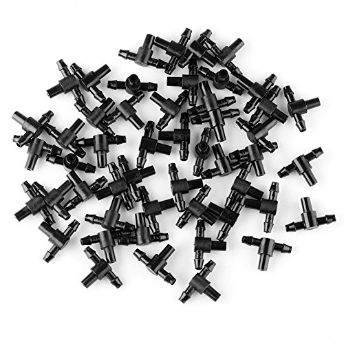 VERY100 灌漑システム散水用具 1/4"(内径4mm/外径7mm)ホース用接続コネクター 3方向分岐コネクター 散水ホースにつなぐだけで簡単接続 50個セット