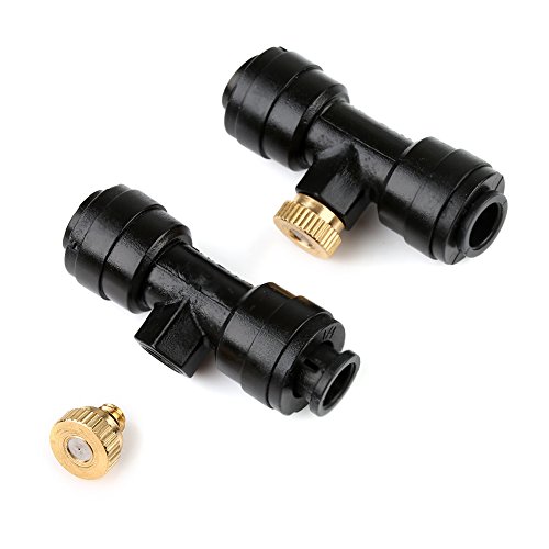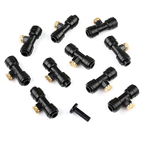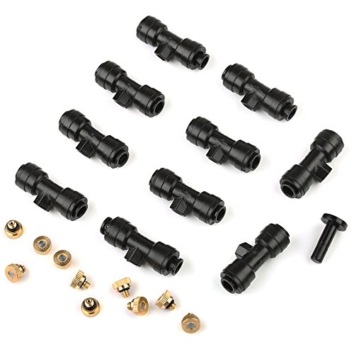 VERY100 噴霧冷却システム散水用具 1/4" ホース対応 ネジ10/24 ミストノズルとコネクターキット 取付簡単 DIY (10ノズルティー+10ノズル+1プラグ)