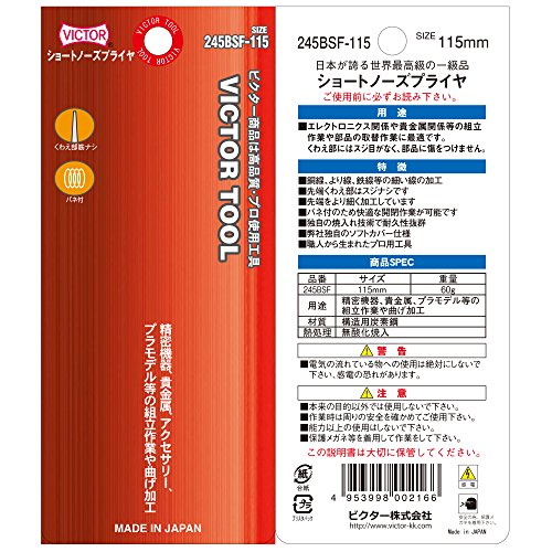 ビクター ショートノーズプライヤー 筋ナシ 115mm 245BSF-115