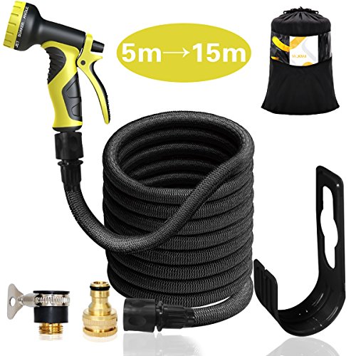 伸びるホース ホース 散水ホース マジックホース シャワーノズル・収納フック付き 3倍に伸びる 掃除 ガーデニング 洗車 VICKMALL (5m→15m)