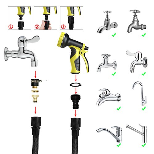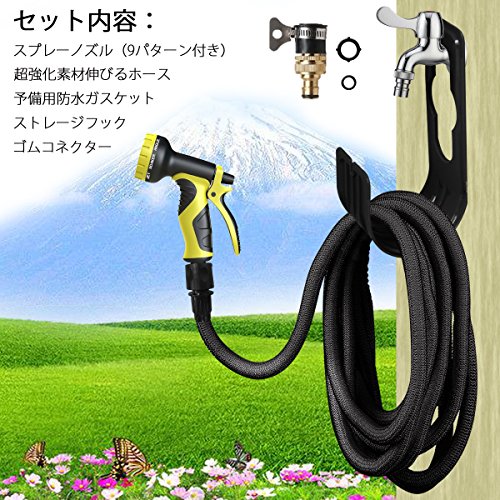- 【セットの中身】スプレーノズル(9パターン付き)×1;超強化素材伸びるホース×1 予備用防水ガスケット×2;ストレージフック×1;ゴムコネクター×1;日本語取扱い説明書