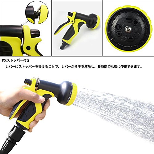- 【散水ノズル】9パターンの散水タイプがあり、手元のダイヤルで簡単に切り替えられるので、様々なシーンに合わせて使用できます。力が省けるよう、レバーにストッパーを掛けて長時間でも楽に使用できます。