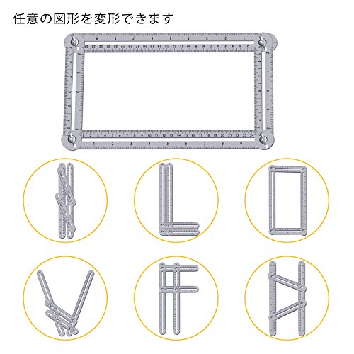- 多目的のテンプレートツールで自由スコヤ、直尺、曲尺としても使えます。4折且つネジだけの操作、鋭角、直角、鈍角など色々な角度で対象物を測定できます。特に不規則な物体の長さと面積の測量に大変役をたちます。