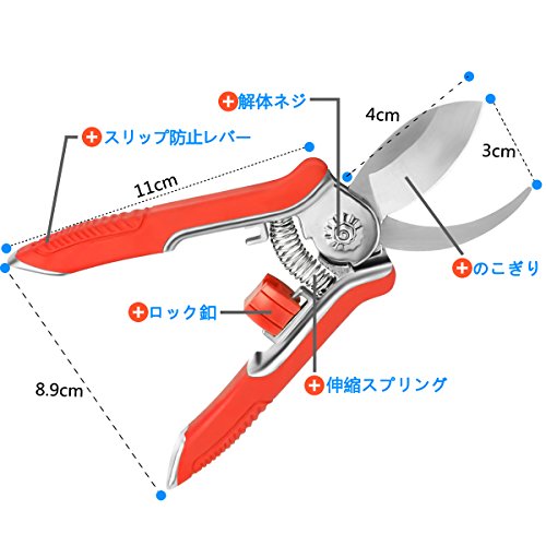 - 【セット内容】 剪定鋏×1、日本語取扱い説明書(ロゴ付き);【製品サイズ】16cm*4.3cm(ロック状態)