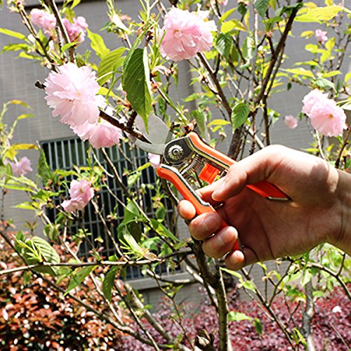 - ラチェット式で従来品と比較すれば、より小さい力で枝を切断、そしてバネ付きで作業能率をアップさせます。アルミダイカストグリップを採用、本体が軽くて、よりしっかり手にフィットし、疲れにくく、女性でも扱いやすい、確実に切断力を伝えることが出来ます。グリップに滑り止めゴムがカバーしてあり、すべりにくく衝撃も吸収してくれます。