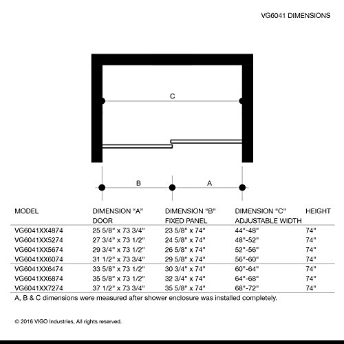 Vigo Elan 48 to 52-in。Framelessスライドシャワードアwith .375-in。クリアガラス、クロームハードウェア VG6041STCL5274 1