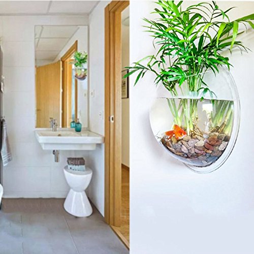 VINSOO 水槽セット ホームデコレーションポットプラント壁掛け吊りバブル魚ボウル透明アクリルボウル魚タンク水族館 金魚鉢 にも (S)