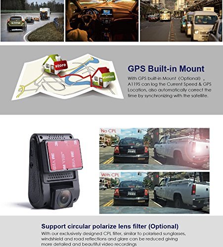 VIOFO A119S DashCam + GPS Logger, Sony IMX291 Sensor, Novatek 96660, 60FPS@HD1080P MOV, G-sensor, Super Capacitor, Motion Detection, Loop Mode, Auto Start/Stop, Vehicle Identity Text, English/French/Portugal/Italian/SimplifiedChinese/Traditional Chinese/Russian/Japanese/Deutsch/espanol