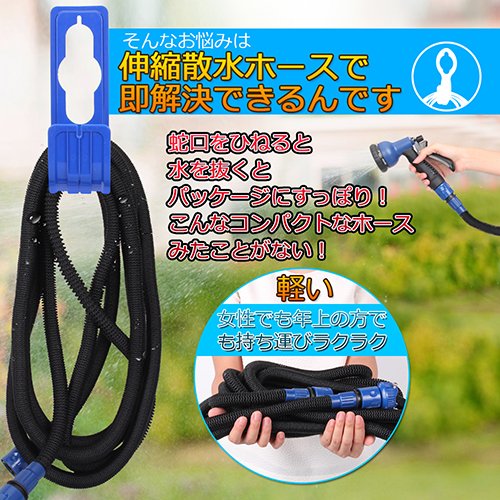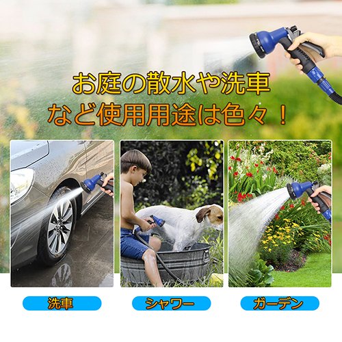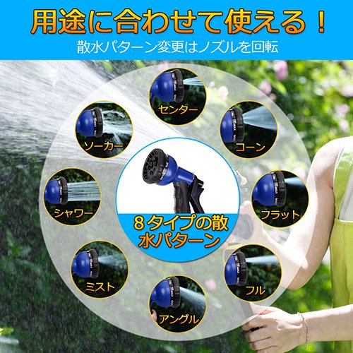 - 【8パターン、多機能で便利なホース】 普通の4パターン伸びるホースと違い、8種類でお庭の水やりからお掃除まで様々なシーンに合わせて使用可能です。 メーカー保証一年を提供します、日本語取扱説明書付き。