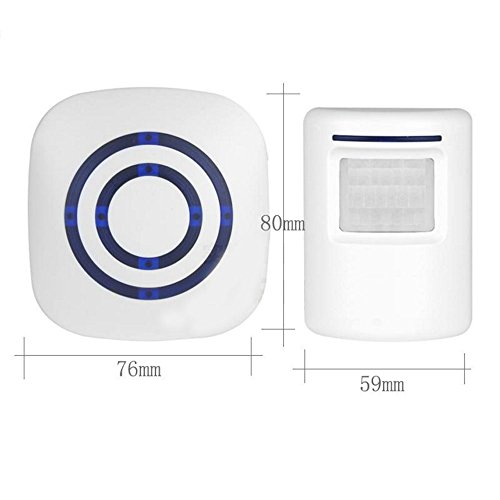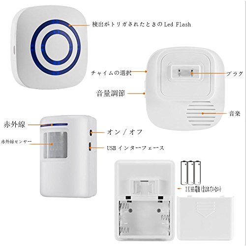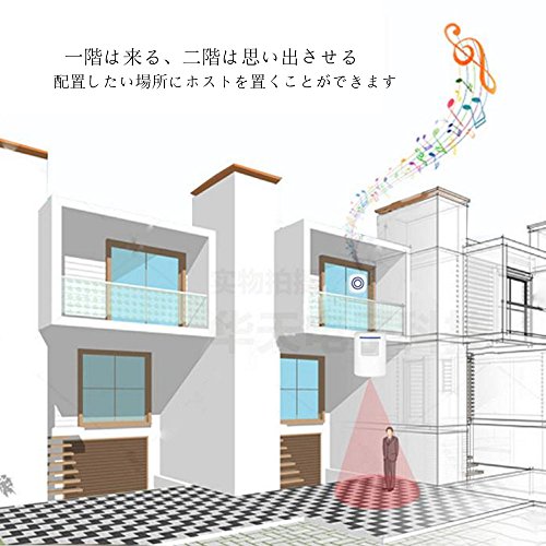 - 多機能で多くの場所で使えます。家庭用持ち歩く安いチャイム。玄関に設置して、一階を感知して、二階の受信機が鳴ります; ワイヤレス来訪客お知らせチャイム。店内に設置して、、角度を調節することで来訪者をお知らせします。とても便利で、店舗の面倒を見るのに最適です。