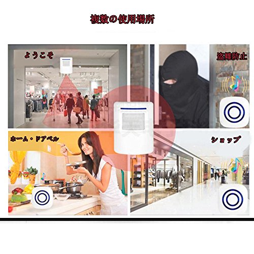 - 家庭防犯アラームは多くの場所に使えます:家庭、 事務所、 ビジネス場所。車道防犯アラームにもワイヤレスチャイムにも使えます。侵入者の防犯アラーム、道アラーム、動物監視機、倉庫監視機、ガレージと工具棚の監視機、玄関また道の検知、ワイヤレス店舗来訪客お知らせチャイム。