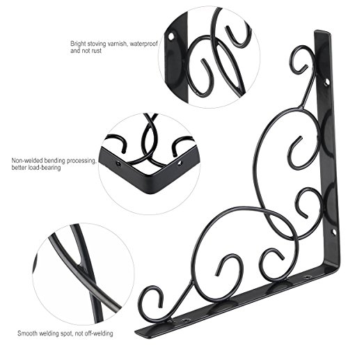 VORCOOL 2個壁マウントフローラルスタイル用のシェルフブラケットBookrack / Calpboard /セットトップボックス(ブラック)