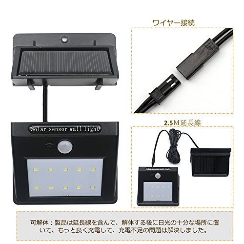 Valuetom 2017新版 ソーラーライト センサーライト 10LED 分解可能 防水防犯夜間自動点灯 屋外 軒先 ガーデン 玄関 勝手口 ガレージ プレイガーデン、通路 ベランダ 駐車場などに適用
