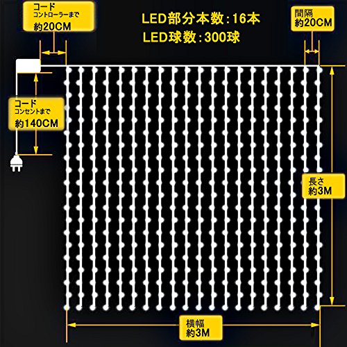 - 仕様: 3m×3m 300球 消費電力:30W 使用寿命:100000(H)コード本数:16本