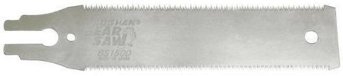 Replacement Bear Saw blade. Vaughan Bear Saws are made to cut on the pull rather than on the push stroke. This allows for a thinner blade, which removes less material, making sawing easier, faster and more accurate. Bear Saw blades are durable spring steel, plated for rust resistance. The specially ground, tri-edge teeth are impulse hardened to retain their sharpness. Interchangeable blade styles match any task, from rough cuts to find woodworking; any blade can be used with either style handle. Blade locks securely in handle, yet saw can be quickly disassembled for convenient toolbox storage. Blade guard protects teeth when saw is stored.