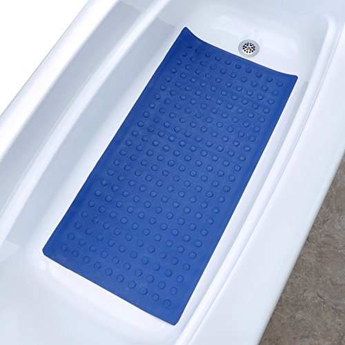 SlipX® Solutions®の大型ゴム製バスマットは、浴槽の広い面積をカバーし、足元の快適さと優れた滑り止め機能を提供する十分な厚みがあります。高品質の天然ゴム製で、色あせたり、ひび割れや亀裂が入りにくくなっており、長くお使いいただける丈夫なマットです。また、洗濯物と一緒に洗濯機で洗うことができます。