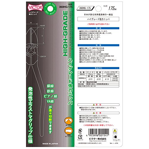 ●切断能力と耐久性にすぐれ電気工事などで幅広く使用されています。●電気工事に最適です。●切断能力(mm)鉄線:φ3.0●切断能力(mm)銅線:φ3.5●切断能力(mm)ピアノ線:φ1.6●全長(mm):195●エラストマーカバー付●厚刃