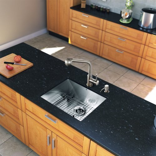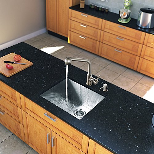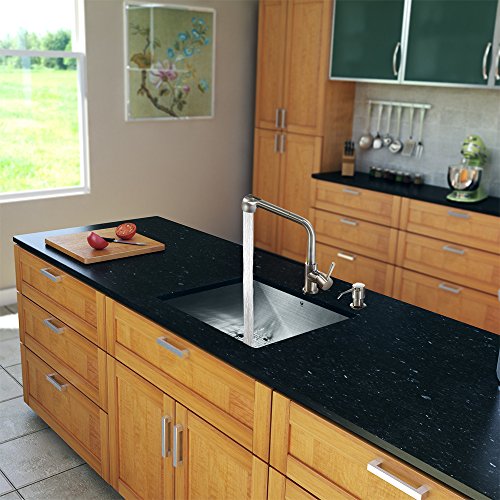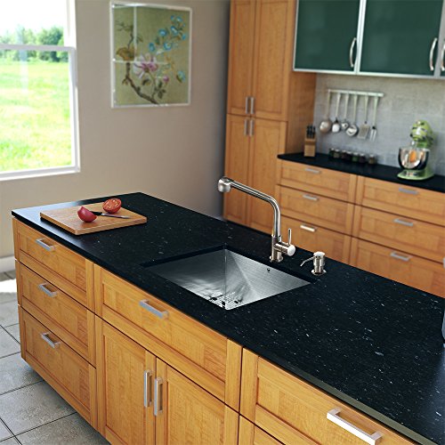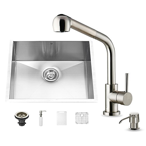 Vigo 23インチアンダーマウントシングルボウル16ゲージステンレススチールキッチンシンクwith Avondaleステンレススチール蛇口、グリッド型部品、ストレーナー、ソープディスペンサー