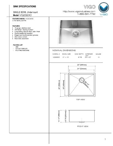 - シンクvg2320 C外形寸法:-インチ。L x 20-in。W x 10.25-in。内部寸法: 21-インチH。L x 18 - IN。W x 9.875-in。H