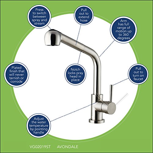 - 蛇口vg02019st全高: 13.875-in。、注ぎ口長さ: 8.5-in。注ぎ口を、360度回転