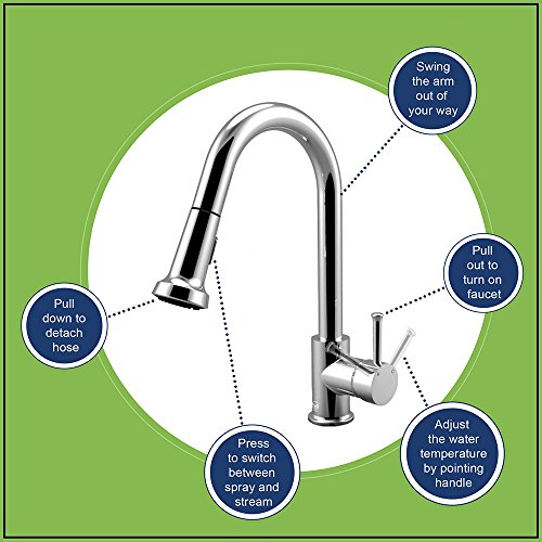 - 蛇口が設定されている場合、dual-function ,プルダウンスプレーaeratedフローまたは強力のスプレーヘッド、シングルレバーの水と温度コントロール、1.8 GPM流量