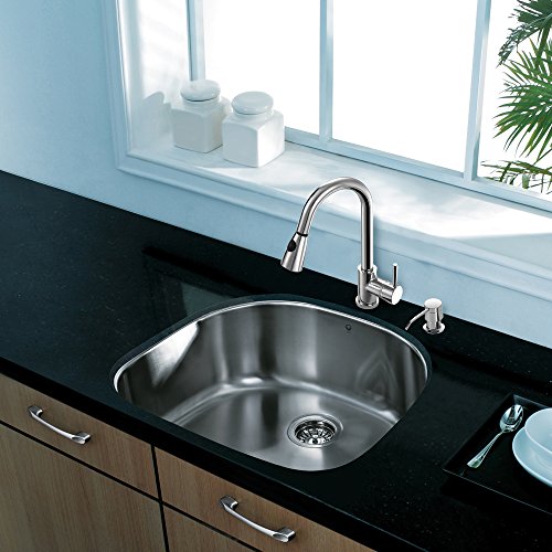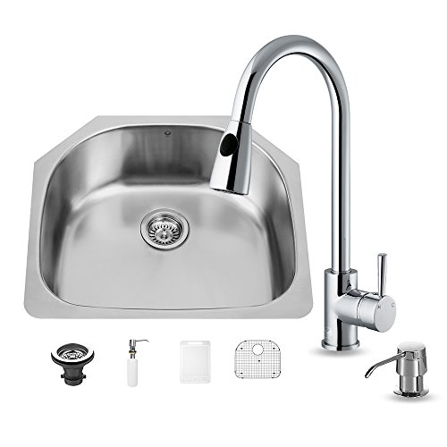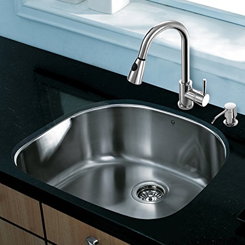 Vigo 24インチアンダーマウントシングルボウル18ゲージステンレススチールキッチンシンクwith Westonクローム蛇口、グリッド型部品、ストレーナー、ソープディスペンサー
