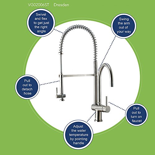 - 蛇口vg02006st全体の高さ:-インチ。、注ぎ口長さ: 8.625-in。、スプレー: 12-in )にしてください。注ぎ口を、360度回転
