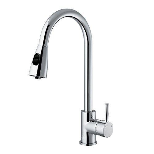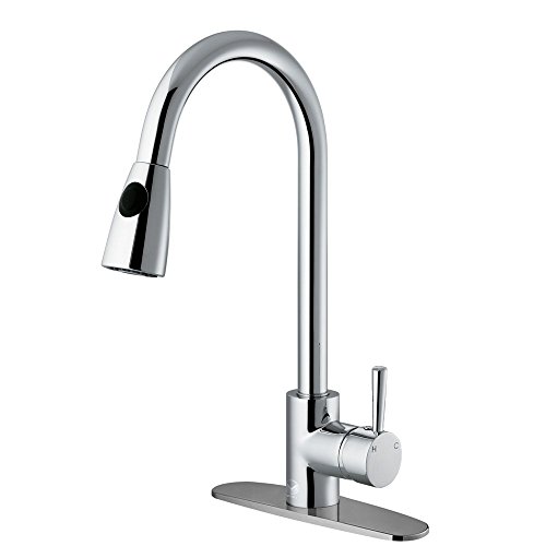 VIGO Weston Single Handle Pull-Down Spray Kitchen Faucet with Deck Plate, Chrome [並行輸入品]
