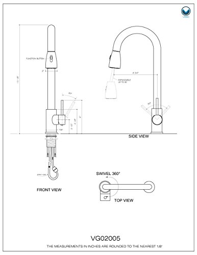 Single lever for water and temperature control, 1.8 GPM flow rate. All mounting hardware and hot/cold water lines included, standard US plumbing .375-in. connections. Deck Plate Height: .375-in., Length: 9.875-in., Width: 2.375-in., For three-hole installations, 1 Year Limited Warranty. Make a statement in your kitchen by adding this stylish VIGO Pull-Down Faucet. Its solid brass construction ensures durability and longer life. Includes a spray face that resists mineral buildup and is easy to clean. VIGO's superior quality finishes resist corrosion and tarnishing, exceeding durability standards while providing a stylish and contemporary look. A high quality ceramic disc cartridge means a drip-free, long lasting faucet. This faucet comes with Matching Deck Plate VG17001CH. Combine this faucet and deck plate with a VIGO kitchen sink to make your kitchen pop.