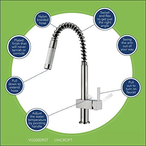VIGO Lincroft Single Handle Pull-Down Kitchen Faucet, Stainless Steel [並行輸入品]
