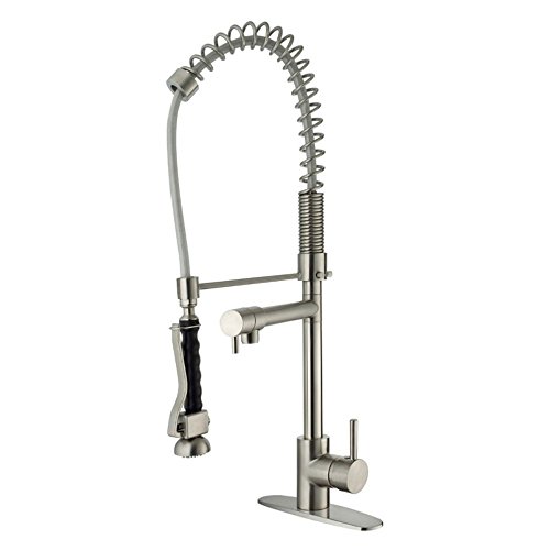 VIGO Zurich Single Handle Pull-Down Spray Kitchen Faucet with Deck Plate, Stainless Steel [並行輸入品]