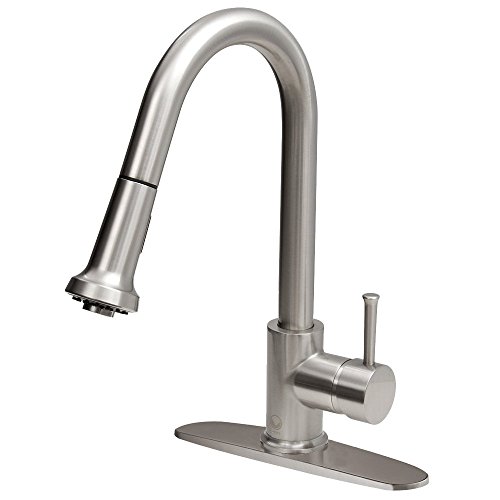 VIGO Harrison Single Handle Pull-Down Spray Kitchen Faucet with Deck Plate, Stainless Steel [並行輸入品]