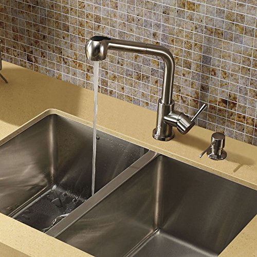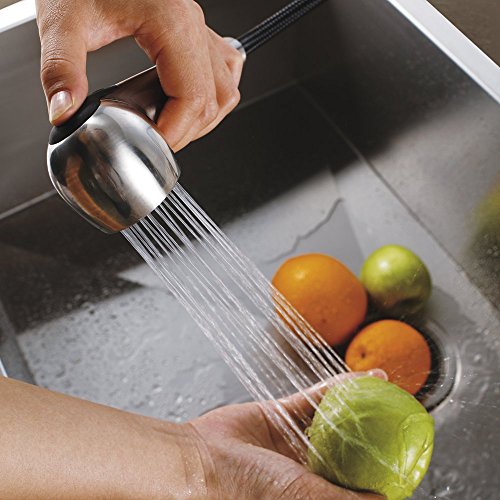 Dual-function, pull-out spray head for aerated flow or powerful spray. Single lever for water and temperature control, 1.8 GPM flow rate. All mounting hardware and hot/cold water lines included, standard US plumbing .375-in. connections. Make a statement in your kitchen by adding this stylish VIGO Pull-Down Faucet. Its solid brass construction ensures durability and longer life. Includes a spray face that resists mineral buildup and is easy to clean. VIGO's superior quality finishes resist corrosion and tarnishing, exceeding durability standards while providing a stylish and contemporary look. A high quality ceramic disc cartridge means a drip-free, long lasting faucet. Combine this faucet with a VIGO kitchen sink to make your kitchen pop.