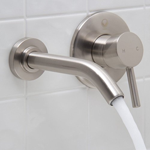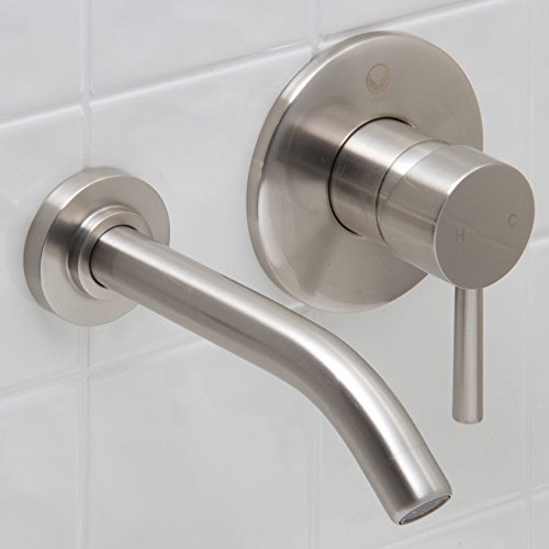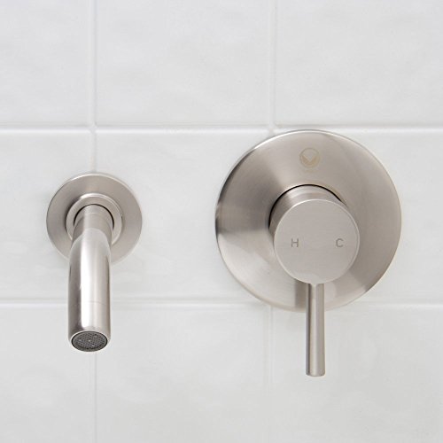 Color:Nickel Product Description The VIGO Olus single lever wall mount faucet in Brushed Nickel finish brings a practical, yet modern design to your bathroom. Solid brass construction ensures durability and longer life VIGO finishes resist corrosion and tarnishing, exceeding industry durability standards Mineral-resistant nozzle is easy-to-clean High-quality ceramic disc cartridge ensures maintenance free use Features easy dual-hole installation Water pressure tested for industry standard 1.5 GPM flow rate All mounting hardware and hot/cold waterlines included Standard US plumbing 3/8' connections Pop-up not included Handle Faceplate Diameter: 4 3/8' Spout Faceplate Diameter: 2 3/8' Handle Center to Spout Center Width: 5 1/4' Spout Reach: 7 1/8' This VIGO wall mount faucet is cUPC, NSF-61, AB1953, and WaterSense certified by IAPMO ADA Compliant Limited Lifetime Warranty From the Manufacturer The VIGO Olus single lever wall mount faucet in Brushed Nickel finish brings a practical, yet modern design to your bathroom. Solid brass construction ensures durability and longer life VIGO finishes resist corrosion and tarnishing, exceeding industry durability standards Mineral-resistant nozzle is easy-to-clean High-quality ceramic disc cartridge ensures maintenance free use Features easy dual-hole installation Water pressure tested for industry standard 1.5 GPM flow rate All mounting hardware and hot/cold waterlines included Standard US plumbing 3/8' connections Pop-up not included Handle Faceplate Diameter: 4 3/8' Spout Faceplate Diameter: 2 3/8' Handle Center to Spout Center Width: 5 1/4' Spout Reach: 7 1/8' This VIGO wall mount faucet is cUPC, NSF-61, AB1953, and WaterSense certified by IAPMO ADA Compliant Limited Lifetime Warranty