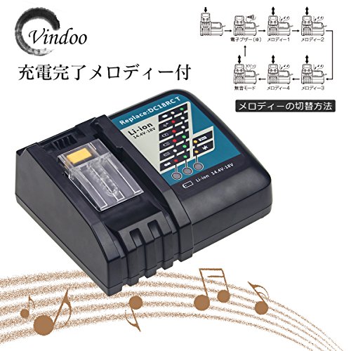 Vindoo マキタ充電器 DC18RC 互換 14.4V18V 直流 差込み式 急速充電器