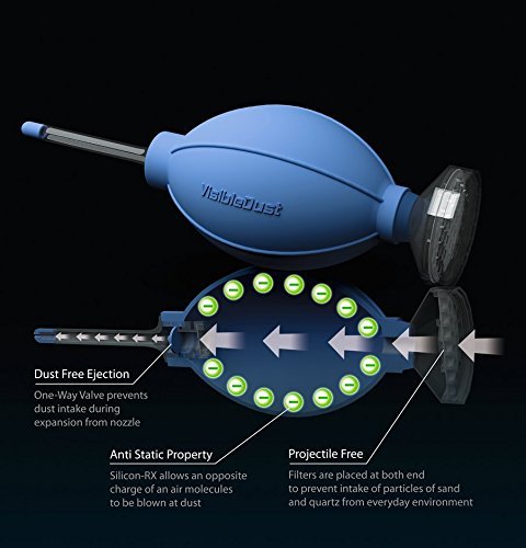 Anti Static Property - *Silicon-RX is a unique compound used in construction of Zeeion? blower to produce an anti static property. Unlike ordinary blowers made from regular rubber that increase static charges, the Zeeion? blower allows an opposite charges of an air molecules to be blown at dust and sensor surface, therefore neutralizing the static charges for an easier and more efficient dust removal system. This advanced feature reduces the dust re-attachment to the surface by neutralizing the surface static charges. Dust Free Ejection - *One -Way Valve at front end of the Zeeion? blower prevents dust intake during expansion from nozzle. Therefore, the intake of the air occurs from the back end far from contamination source. This results in ejecting cleaner air back to the surface unlike the ordinary blower that sucks in the dust from front nozzle close to contamination source during expansion. Projectile Free - *Filters are placed at less than 20 microns size at both ends to prevent intake of particles such as sands and quartz found in everyday environment, resulting in a particle free air ejection. This feature eliminates creating projectiles and the chance of producing nicks and cuts on the sensor when blown forcefully at them usually seen by using ordinary blowers. PATENTED.