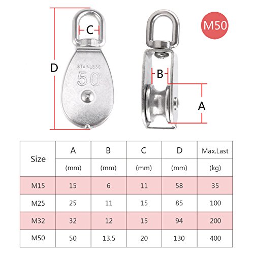 回転アイロープ滑車 ステンレススチール シングルプーリーブロック シングル滑車 304ステンレス製 M50