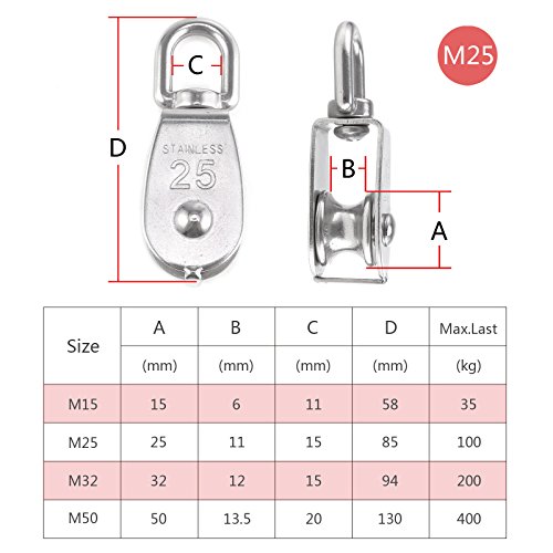 回転アイロープ滑車 ステンレススチール シングルプーリーブロック シングル滑車 304ステンレス製 M25