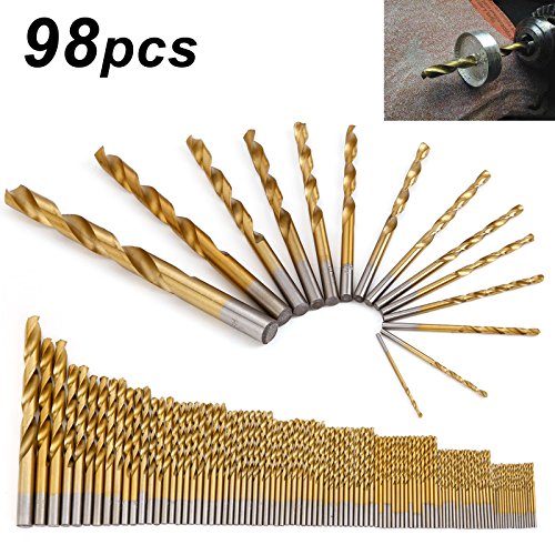 穿孔&穴あけ用 ドライバービット ツイストドリル刃 高速度鋼 HSSステンレス製14 サイズ 大容量98pcs 軽金属・樹脂・木材対応