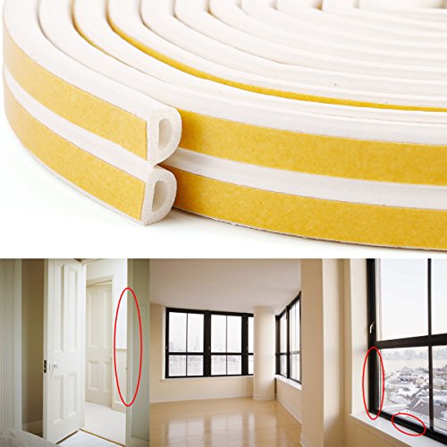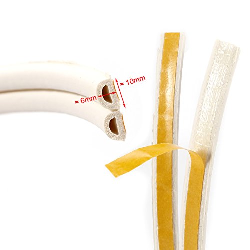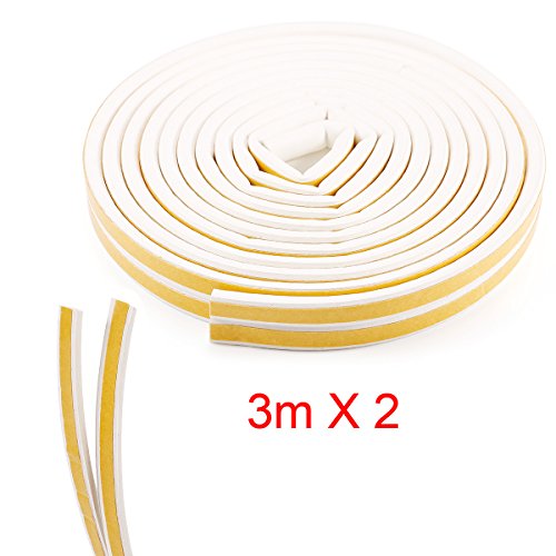 【エコ生活】 防音・防風・防虫・防水用 中空D型のすきまテープ ドア/窓用の気密パッキン 戸当たりテープ ホワイト 長さ3m・2巻 総6m