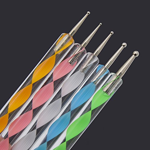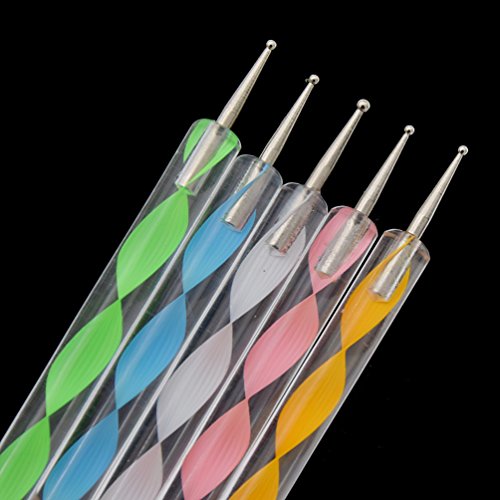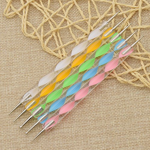 Viviseason(ビビシーズン)ペン ネイルアートの工具 ツール 螺旋状の棒 双頭 大小 マルチカラー 飾り 五本入れ