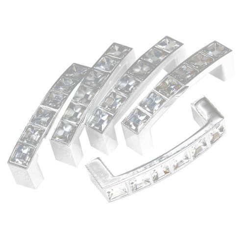 Vktech 5 PCS Square Acrylic Decorated 64mm Stainless Steel Door Cabinet Drawer Handle Pull [並行輸入品]