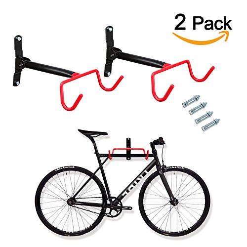 voilamart 2pcsバイクウォールマウントハンガー – インドアストレージラック、ガレージ自転車ホルダーフック折りたたみスペースセーバーwith Screws , 66lb最大容量