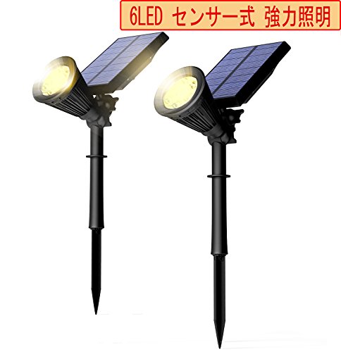 Vorally ソーラーライト 屋外 明るい6LED 明暗と人感センサー 2個セット IP65防水 2モード点灯 ガーデンライト 夜間自動点灯 玄関先/庭/車道/歩道/芝生/ガーデンなどの照明・防犯・災害対策 (暖白)