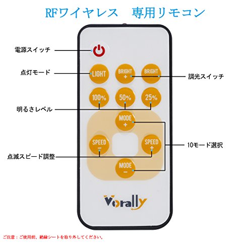 - ● リモコン付き:専用のリモコンが付き、ライトのON/OFF、点灯モードの切り替え、明るさの調整、点滅スピードの選択などの操作が簡単出来、そして、前回調節したモードを記憶した機能が付き、使い勝手が良いです。