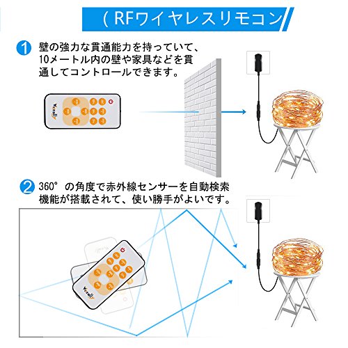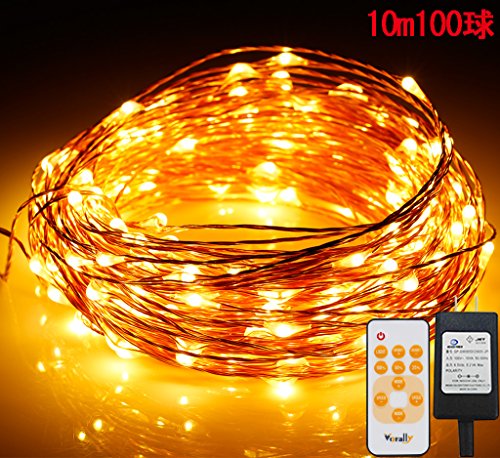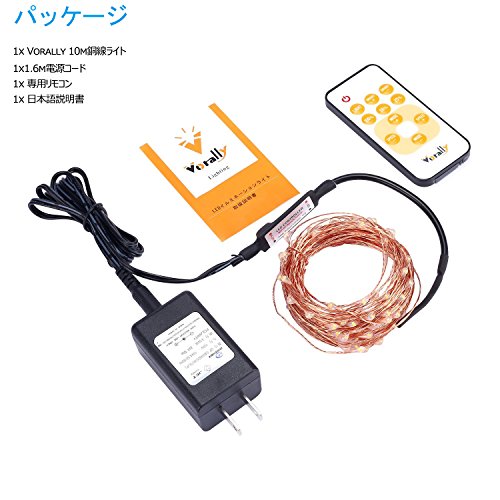 Vorally イルミネーションライト AC電源付き リモコン付き 10モード点灯 18段階調光 記憶機能 防水IP65 クリスマスライト (10m100球)