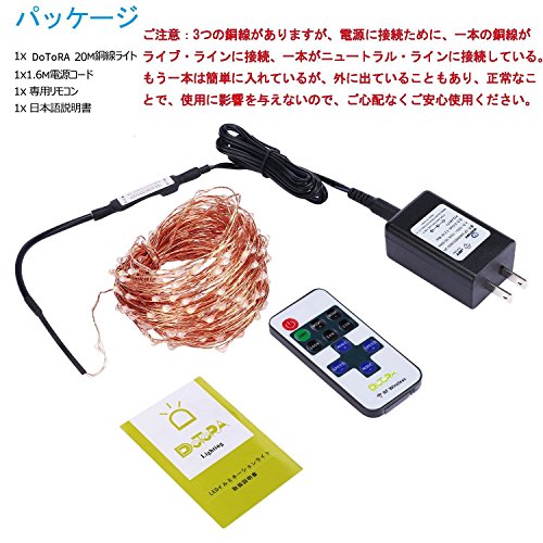 Vorally イルミネーションライト AC電源付き リモコン付き 10モード点灯 18段階調光 記憶機能 防水IP65 クリスマスライト (20m200LED)