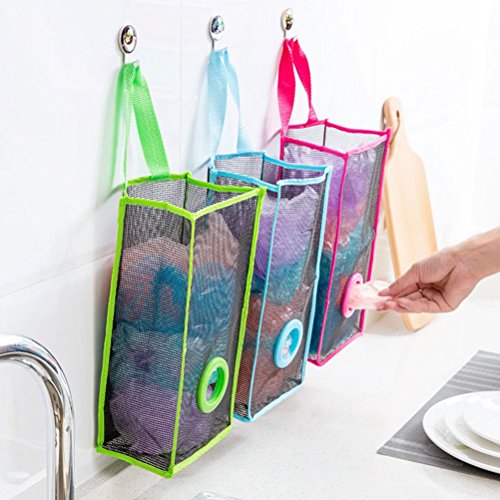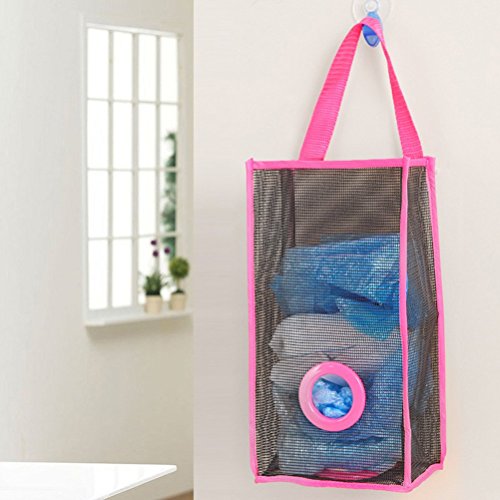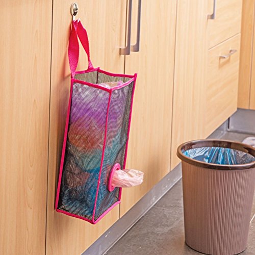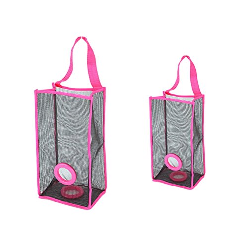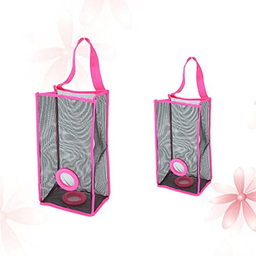 Vosarea 収納 袋 バッグ グリッド メッシュ 袋ディスペンサー 抽出タイプ ゴミ箱 耐久性 省スペース キッチンフルーツ 野菜 収納用 キッチン用品 2ピース(ローズレッド)